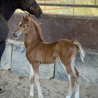We are ecstatic to announce the birth of our first foal in 2026 – a big boy born Friday night by SF Aftershoc out of Even Fancier DEH (Inception x Fancy Afire, an Afire Bey V daughter). Handsome chestnut hit the ground ready to rock! Many thanks to Dr. Jerry Longworth and the team at Scottsdale Equine Reproduction Center for his safe delivery and care. We welcome any suggestions of a name for this fine young man!