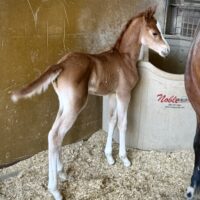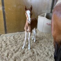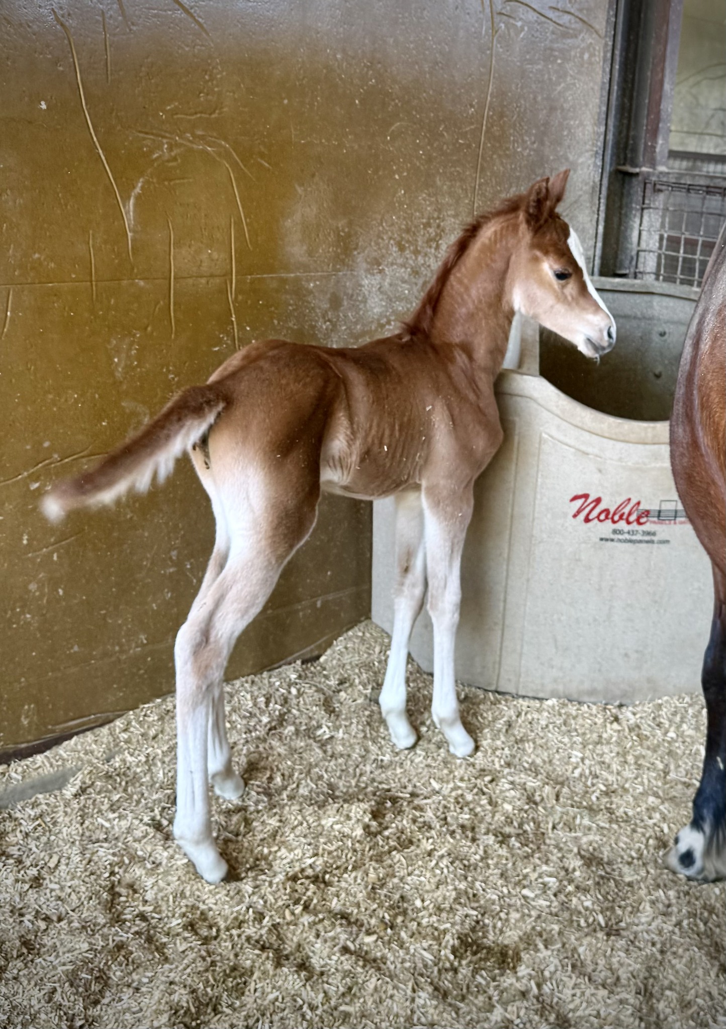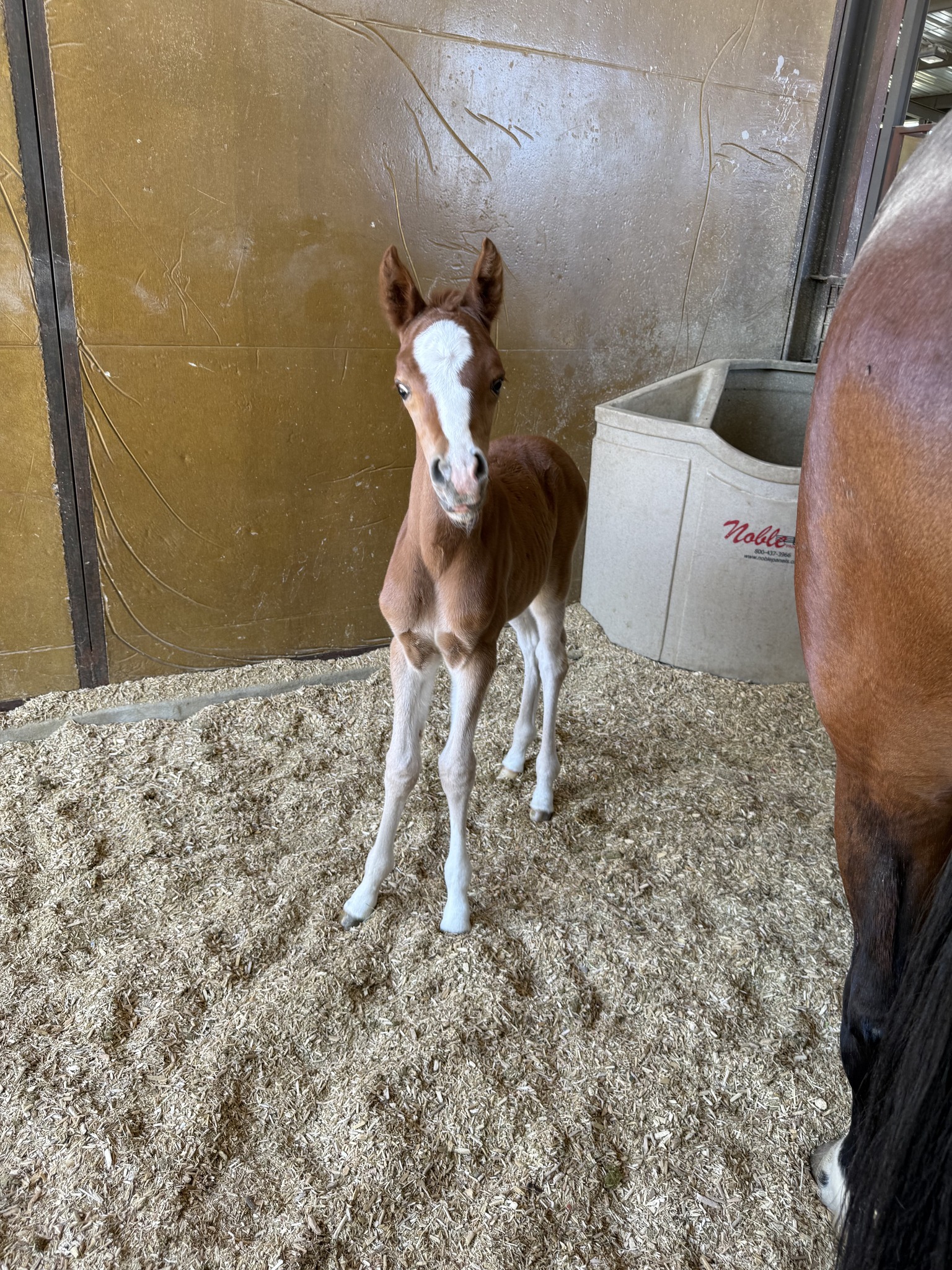 Hooray – our fifth and final foal is another filly! Here she is at 5 days old with chrome to spare. By SF Aftershoc + out of Fancy Afire (Afire Bey V x Flame Dancer) – now retired from breeding – this girl is very special to us for several reasons. First, she is Fancy Afire’s final offspring and second, she is a full sibling to the lovely filly we lost as a weanling several years ago. We are thrilled with our 2026 foals!
